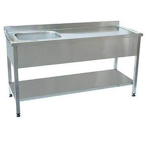 WORK TABLE WITH 1 SINK RIGHT WITH MAIN SHELF, 1500x600x850